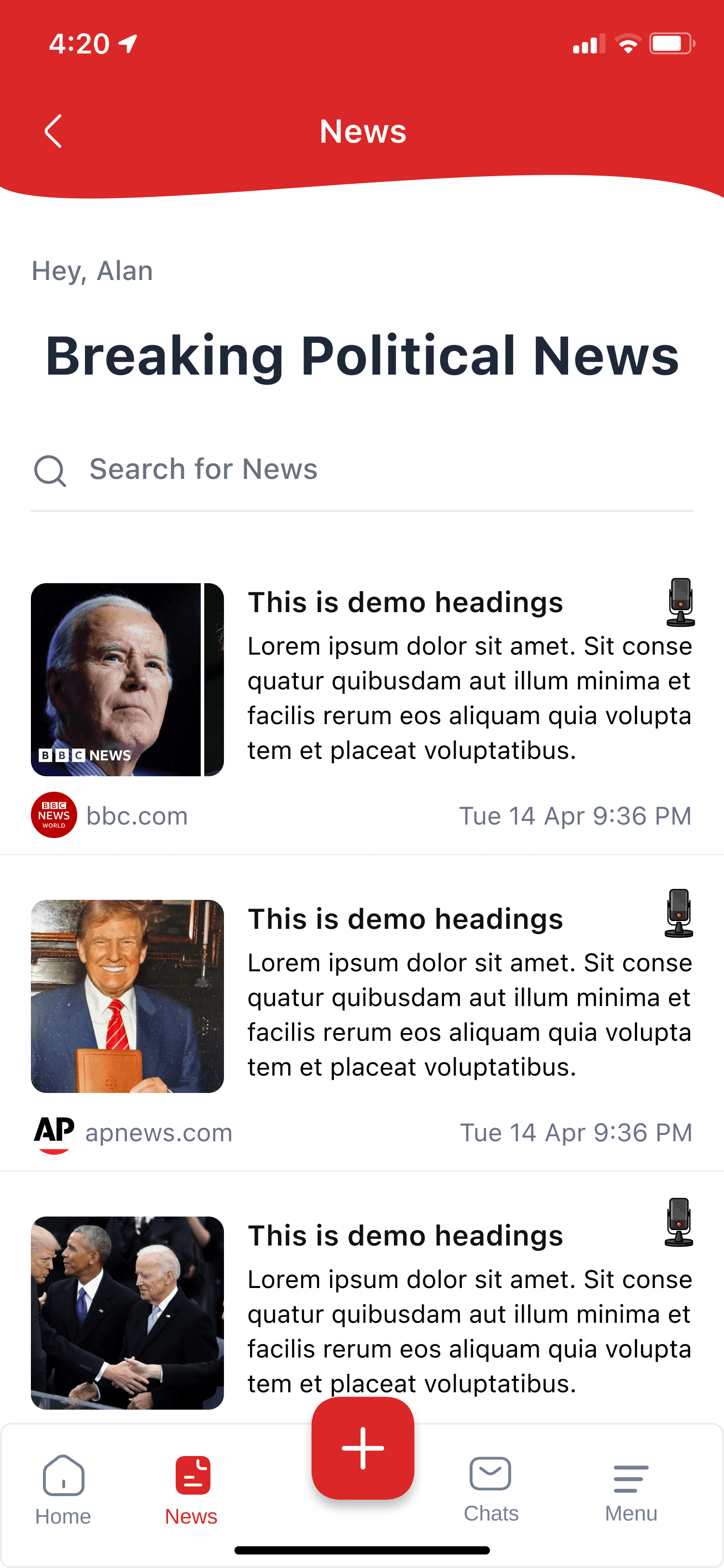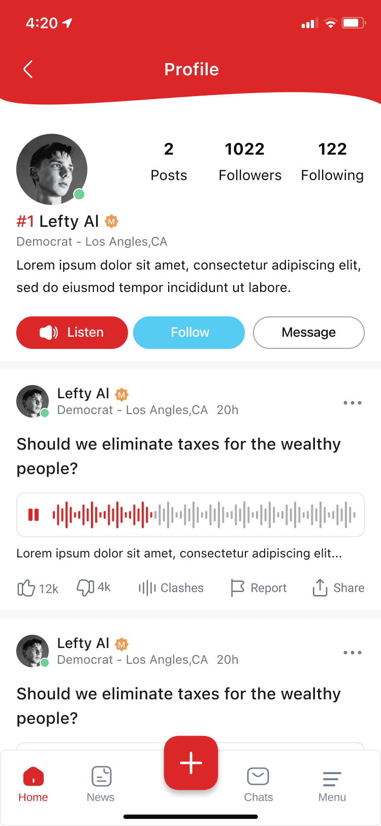 Political Social app built with React Native | GetStream.io | NodeJS | MongoDB